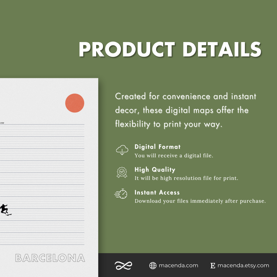 Inject energy into your room with this Barcelona digital art. A vibrant design that helps you find your flow. Download and print instantly.