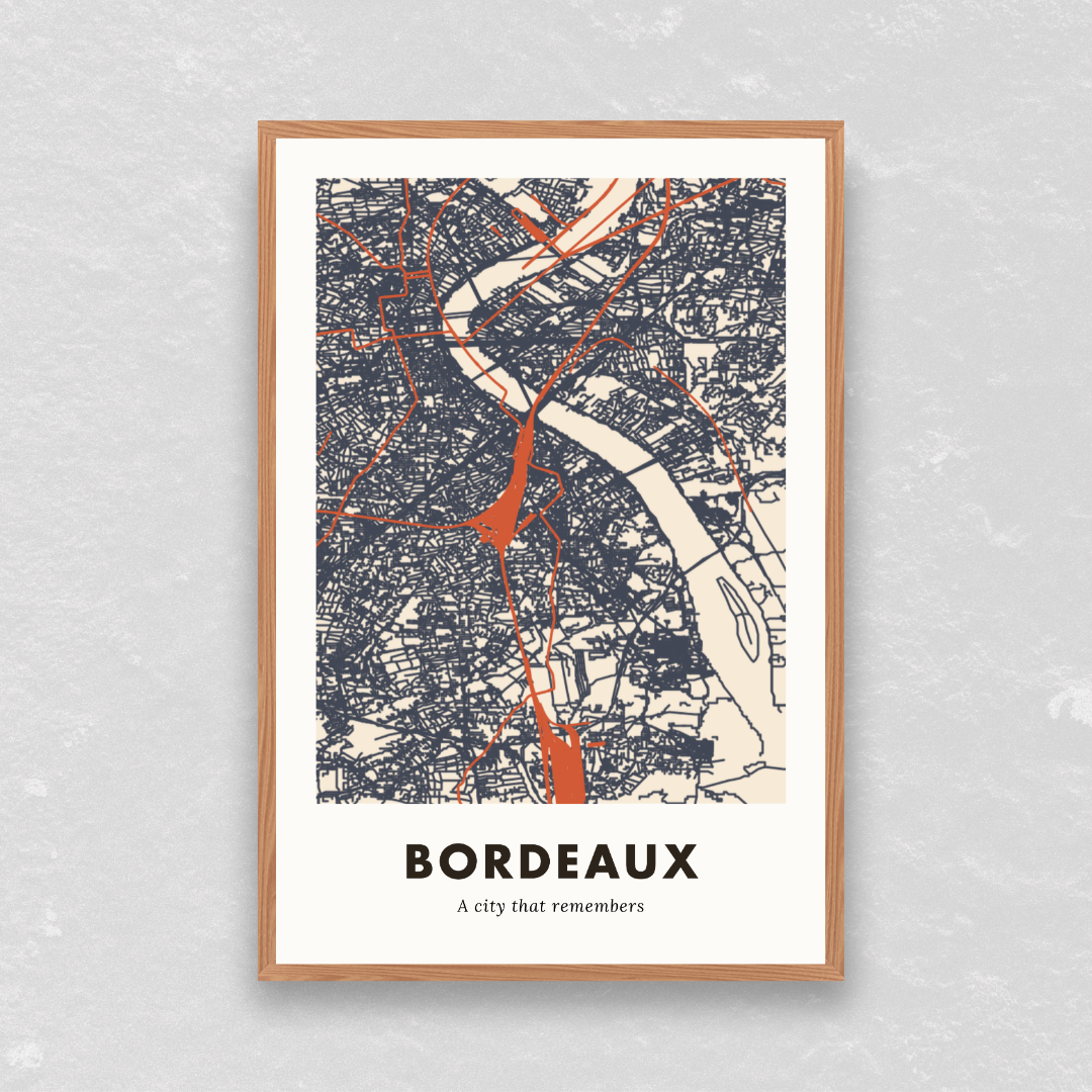 Bordeaux map poster designed with intention for the creative workspace. Stripped back. Honest.