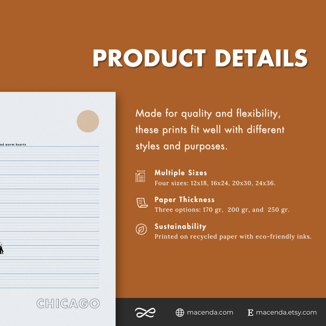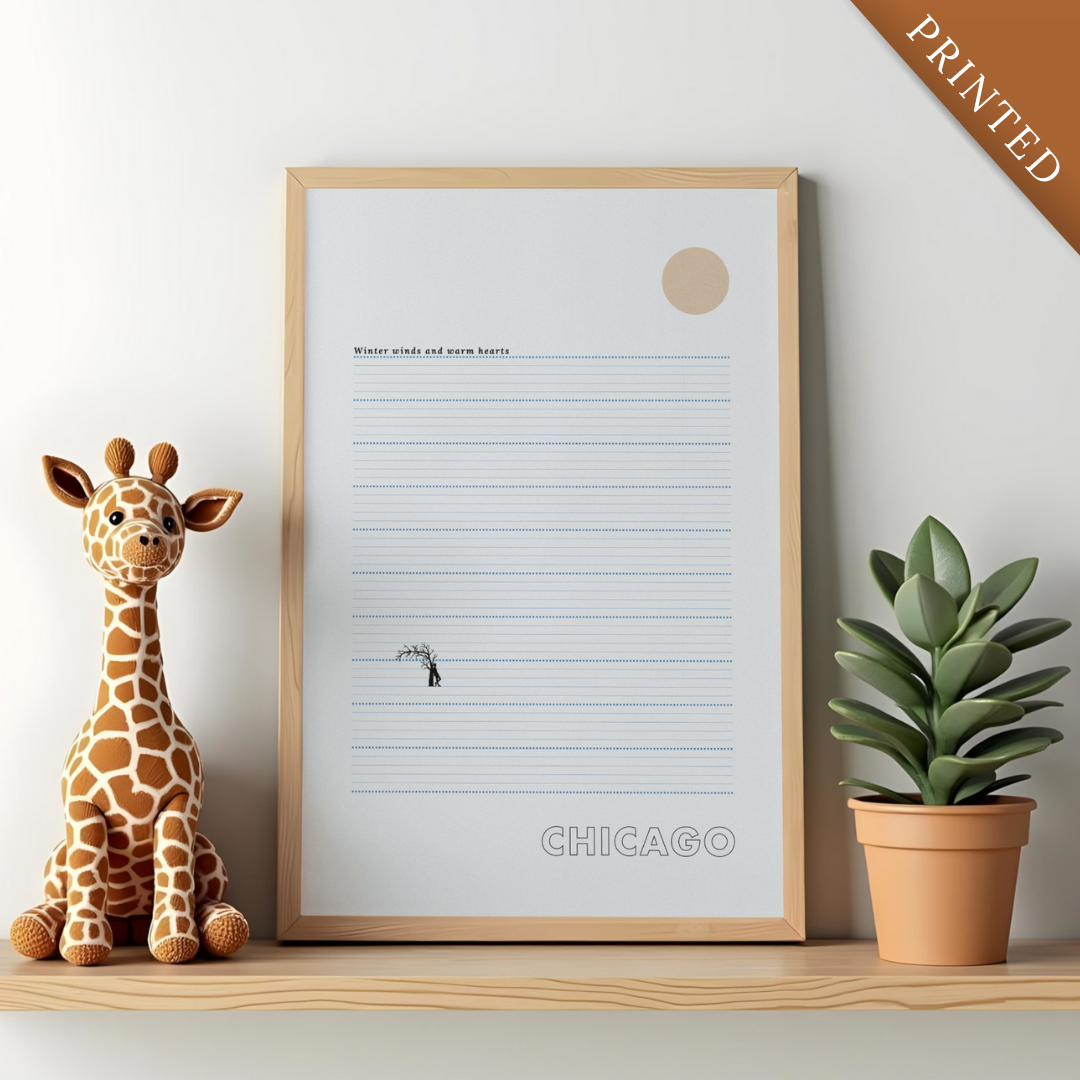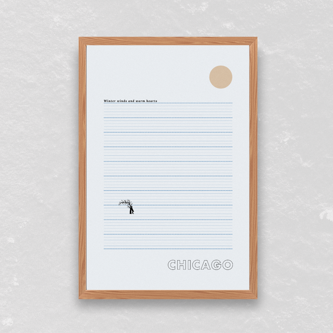 Resilience against the breeze. "winter winds and warm hearts" captures the strong spirit and architectural grandeur of the Windy City. This poster designed with intention for minimalist spaces.