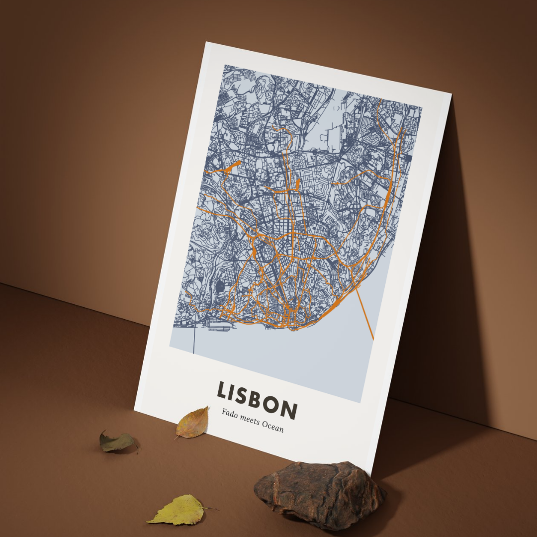 Lisbon map poster designed with intention for the creative workspace. Stripped back. Honest.